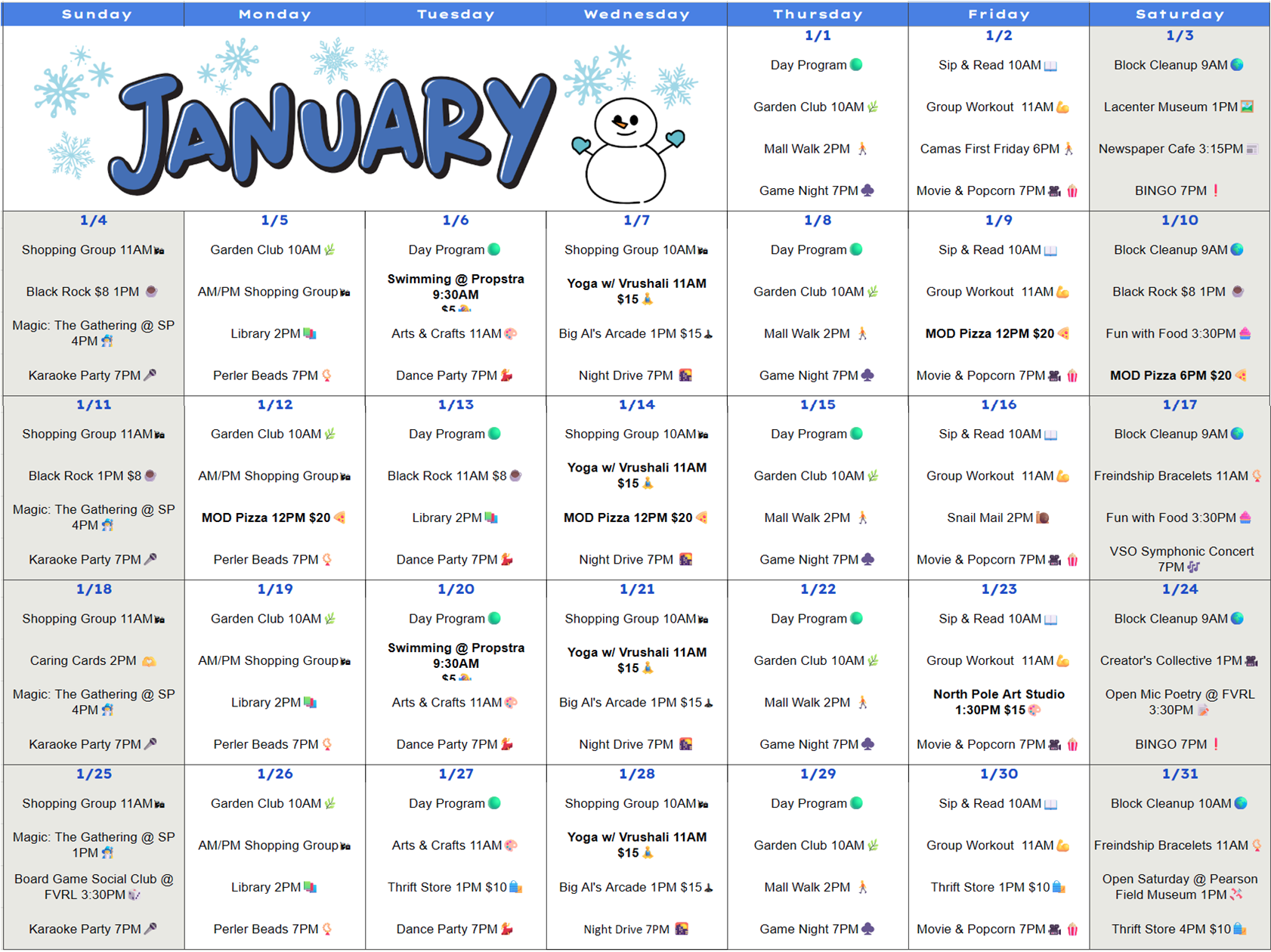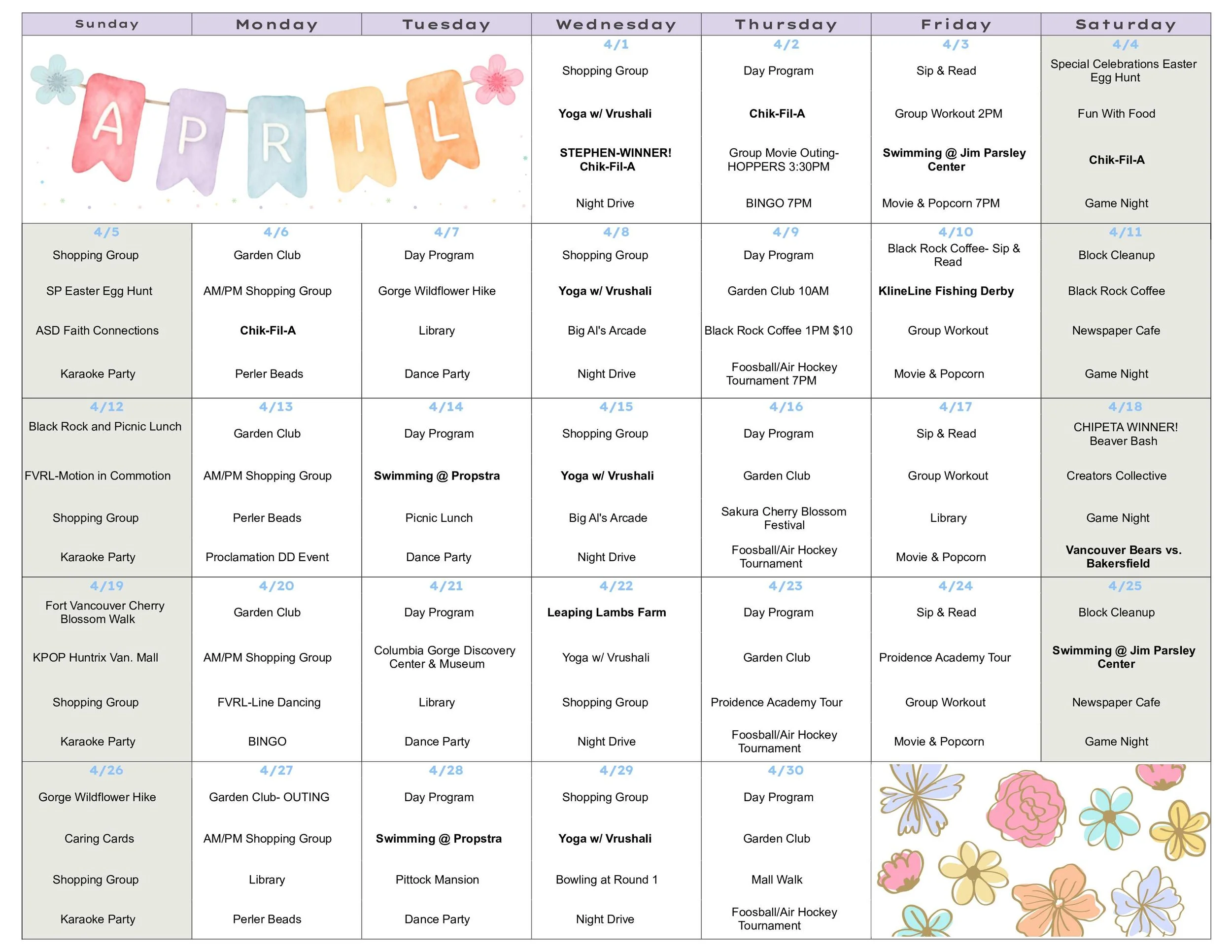 Check Out This Month’s Activities Calendar!